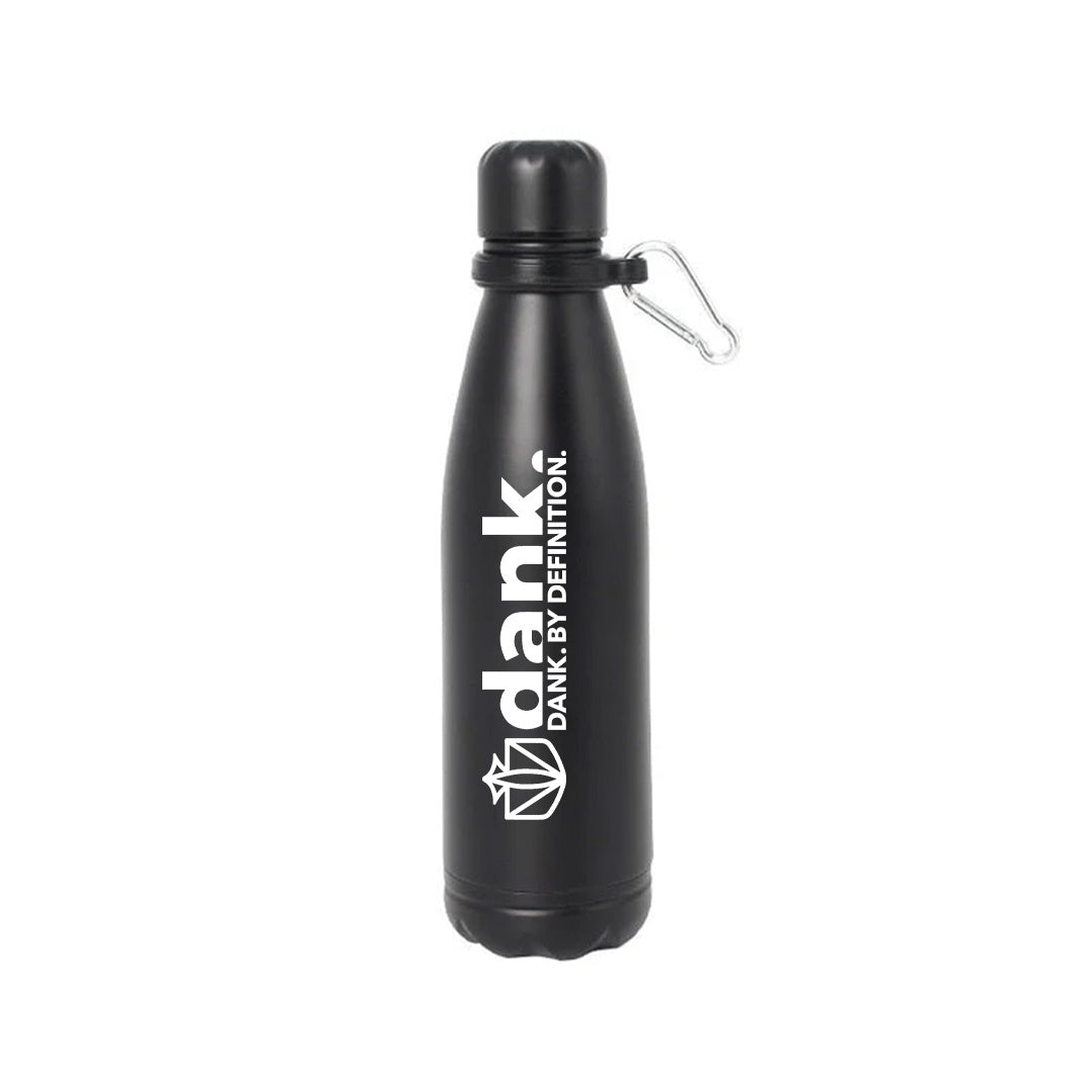 Function meets discretion. This double-wall, vacuum-insulated stainless steel bottle keeps drinks cold for up to 24 hours or hot for 12. Designed with a hidden, odor-proof stash compartment built into the base — perfect for keeping your essentials close without drawing attention. Matte black finish with a subtle Dank logo for a clean, low-key look.